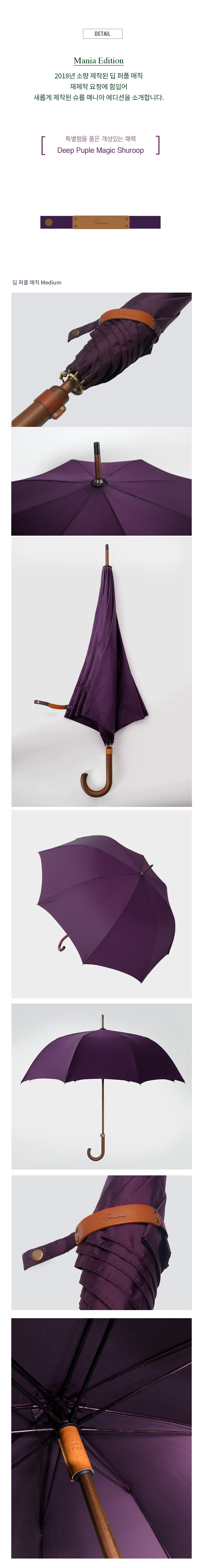 A. 슈룹의 슬라이드 무브먼트 프레임은 장력을 이용한 방식입니다. 새제품의 경우 원단 끝부분에 주름이 있는데 원단이 자연스럽게 늘어나고 자리를 잡으면 팽팽하게 변합니다. 우산에 떨어지는 통통거리는 빗소리도 슈룹의 슬라이드 프레임의 낭만입니다.
